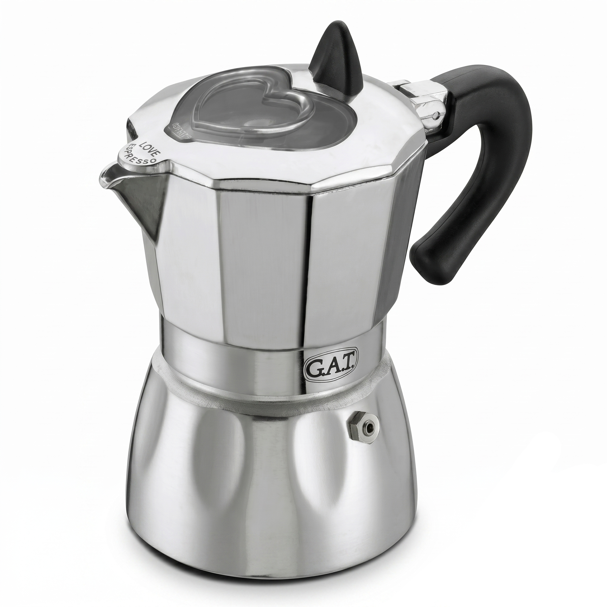 Începeți-vă diminețile cu un espresso italian autentic folosind acest elegant espressor moka G.A.T. Finisajul metalic lucios și fereastra transparentă în formă de inimă de pe capac adaugă un strop de romantism ritualului dumneavoastră de cafea, permițându-vă să urmăriți cum se prepară băutura.